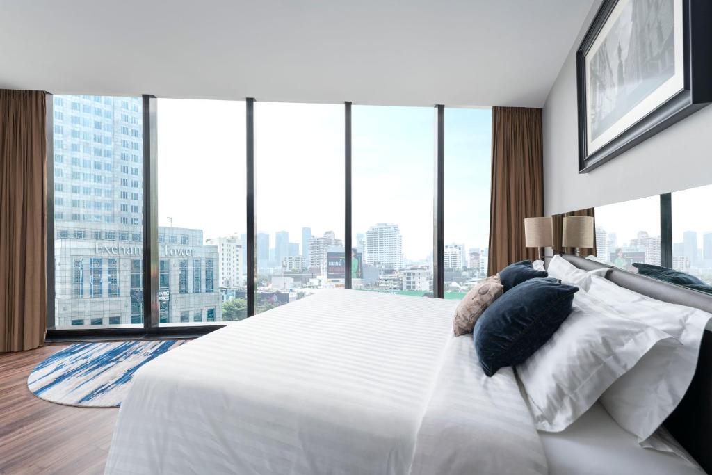The hotel has received many positive reviews about its excellent and friendly staff who provide impeccable service. The location of the hotel in the Sukhumvit area is great, just a few minutes walk from Asoke BTS and Sukhumvit MRT Stations. Many guests have praised the hotel for its clean and comfortable rooms, which offer a beautiful view of the city. Guests also enjoyed the pool with a great view and the good breakfast with many choices, which kids love.